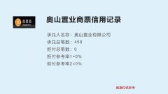 截至11月3日,奥山置业有限公司承兑商票1.5亿元,拒付0元。 承兑人名称: 承兑总笔数: 拒付总笔数:0 数据来源:电子商业汇票系统(ECDS) 点此查询更多 商票信用记录...